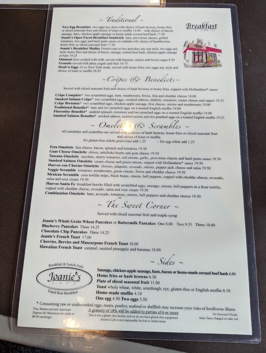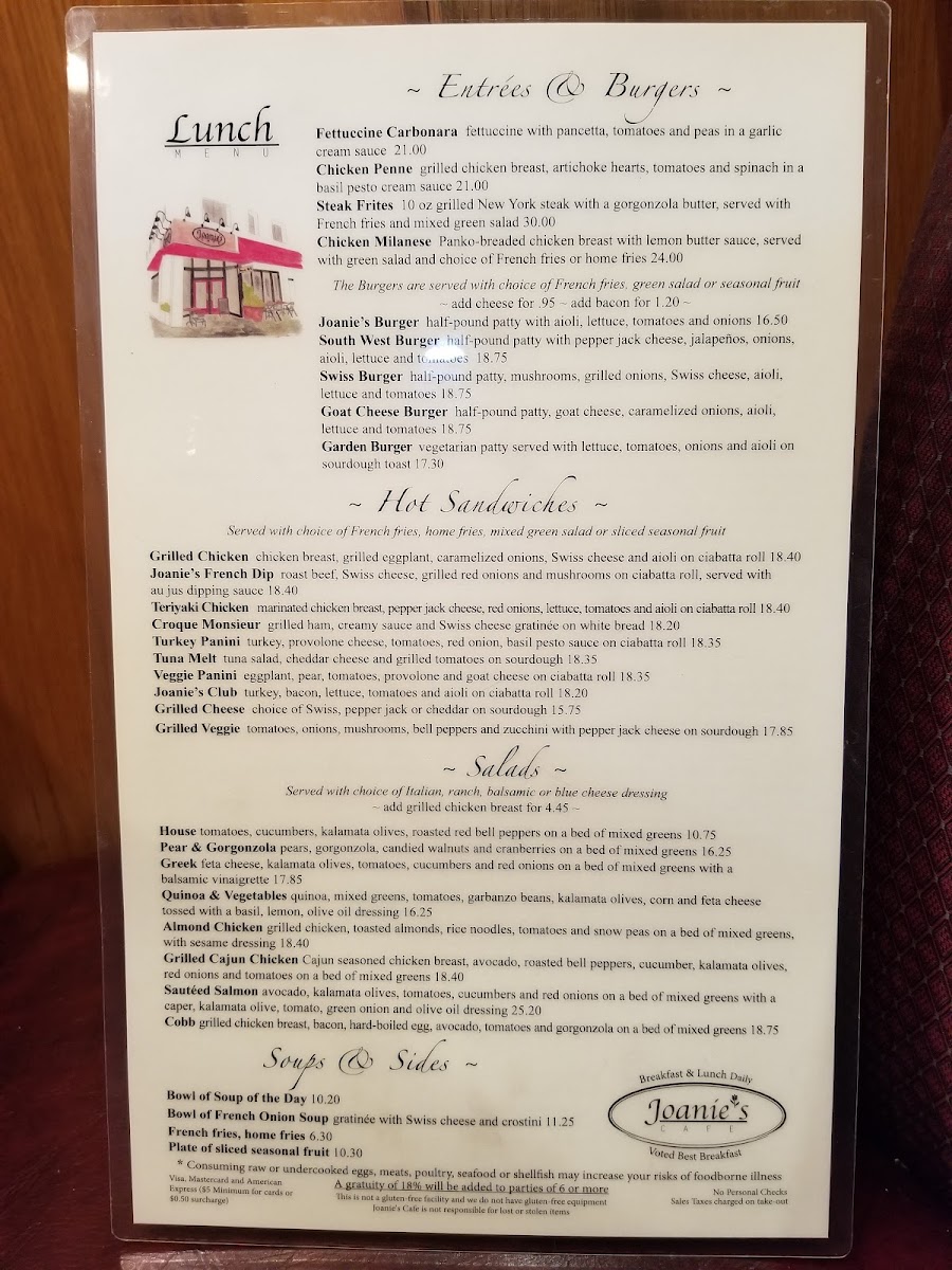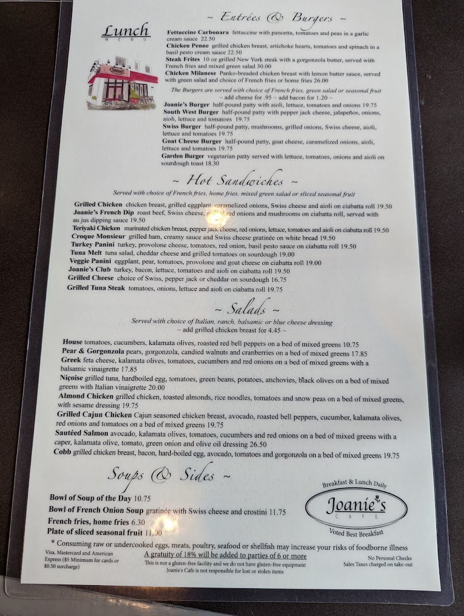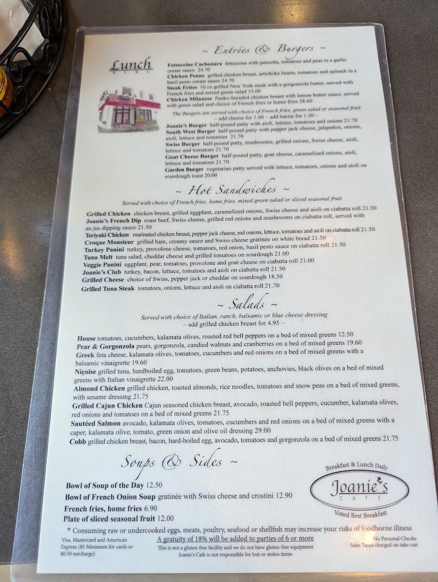 Customer feedback echoes the sentiment of a warm and welcoming experience. One reviewer, Alan King, noted the "great service and big portions," while another, Philip S, praised Joanie’s for being “pet-friendly,” further enhancing its appeal as a family-oriented establishment. Whether you’re revisiting old favorites or exploring the extensive menu for the first time, the consistency in quality and service is sure to impress.